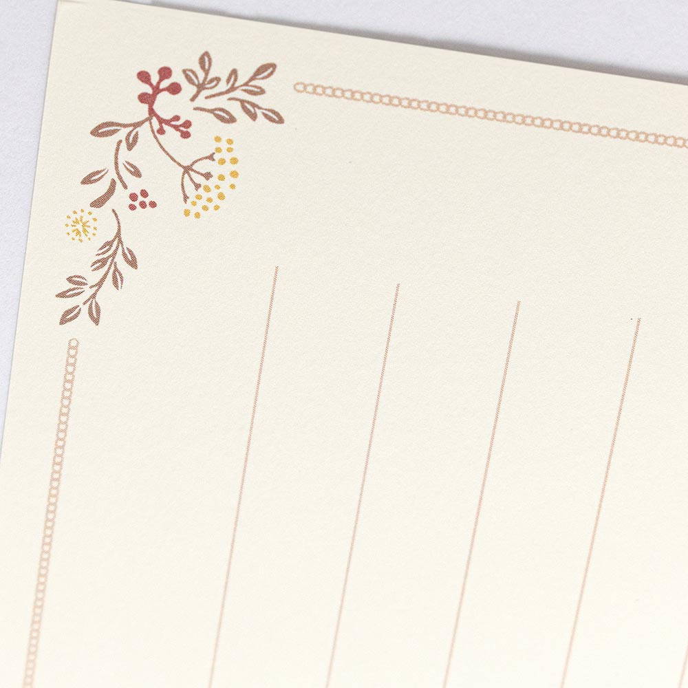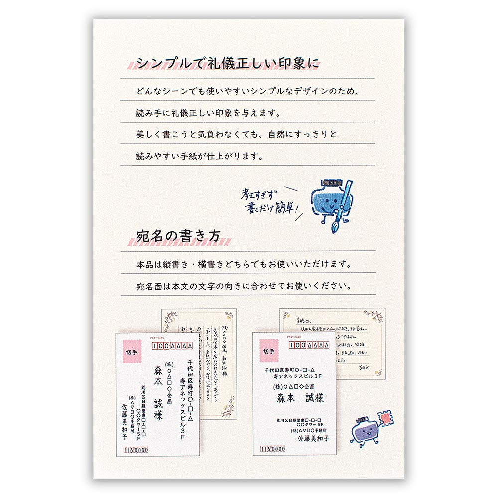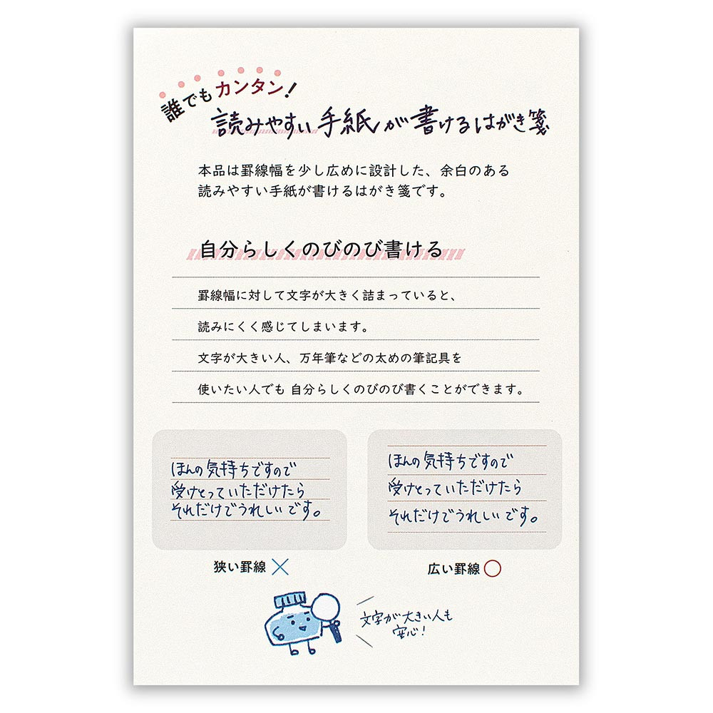 すっきりと読みやすい手紙が書けるよう、罫線幅を少し広めに設計したはがき箋です。