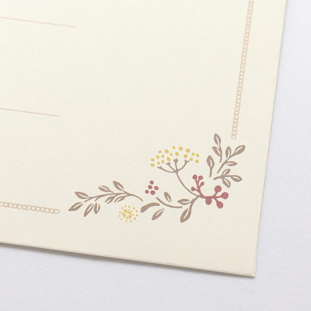 小花のフレームデザインが、優しく礼儀正しい印象を与えます。