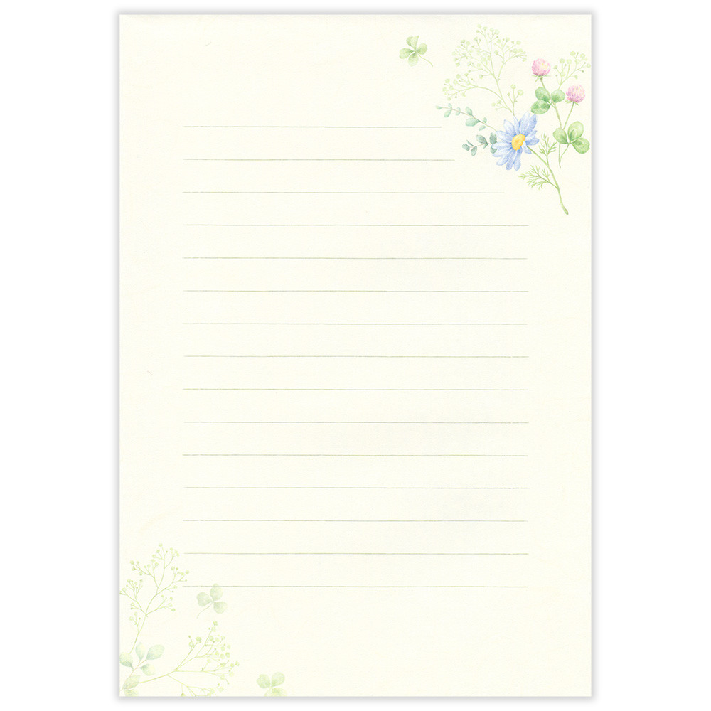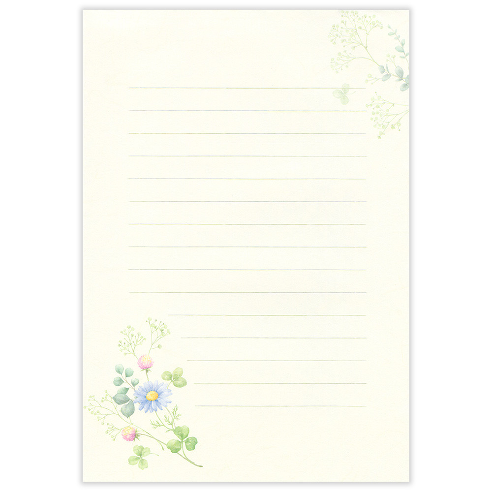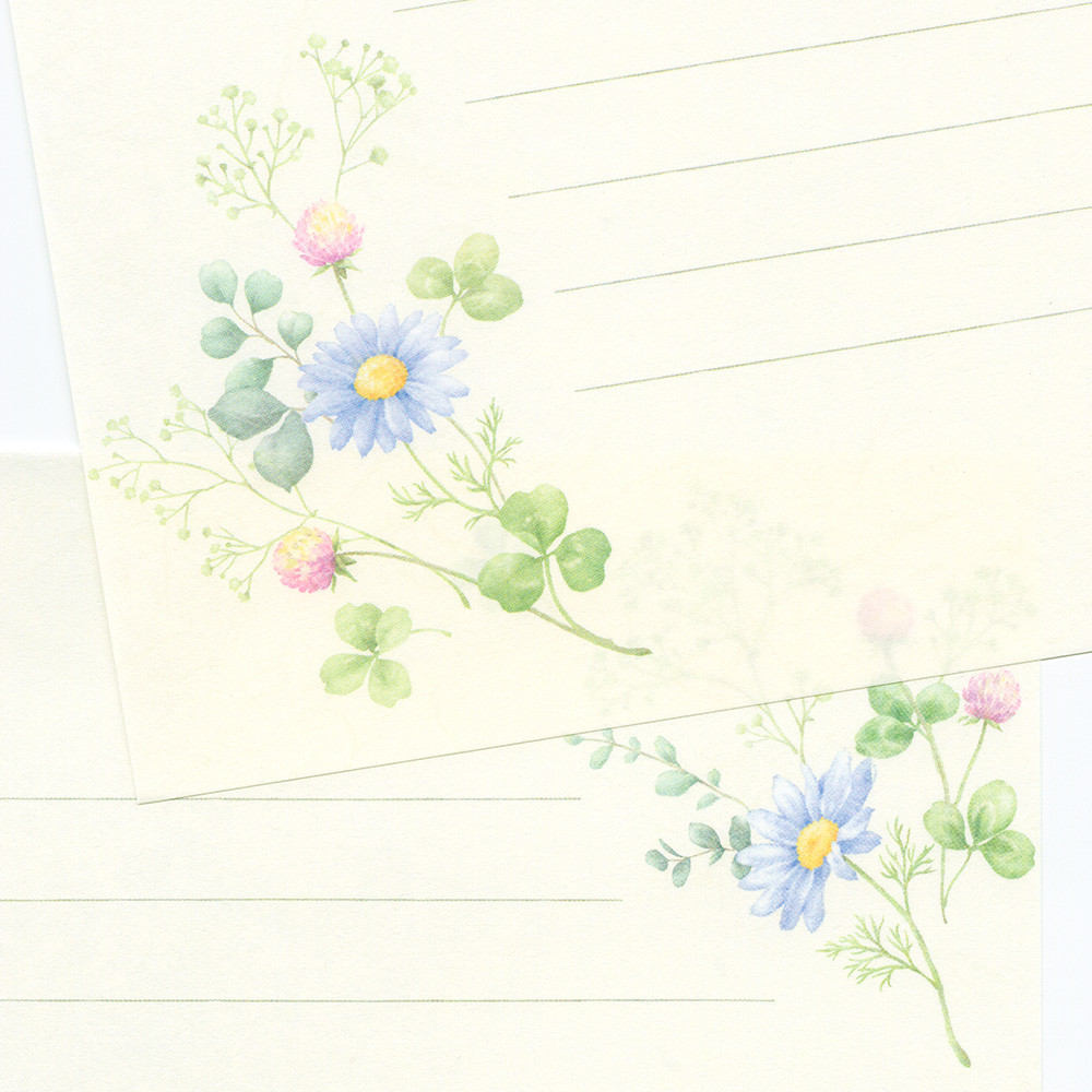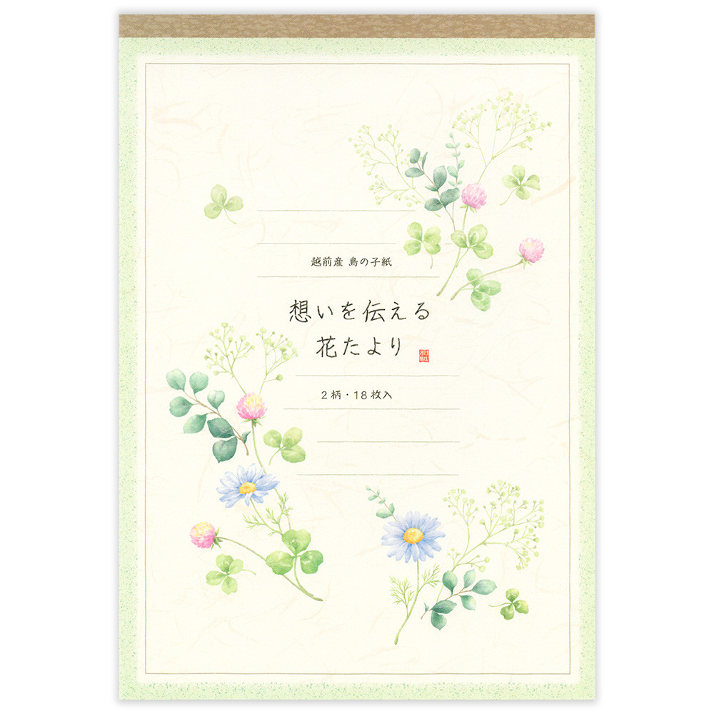 落ち着きのある和紙の風合いと楚々とした花のデザインで、ご挨拶やお礼、お見舞い、目上の方へのお手紙など幅広くお使いいただけます。