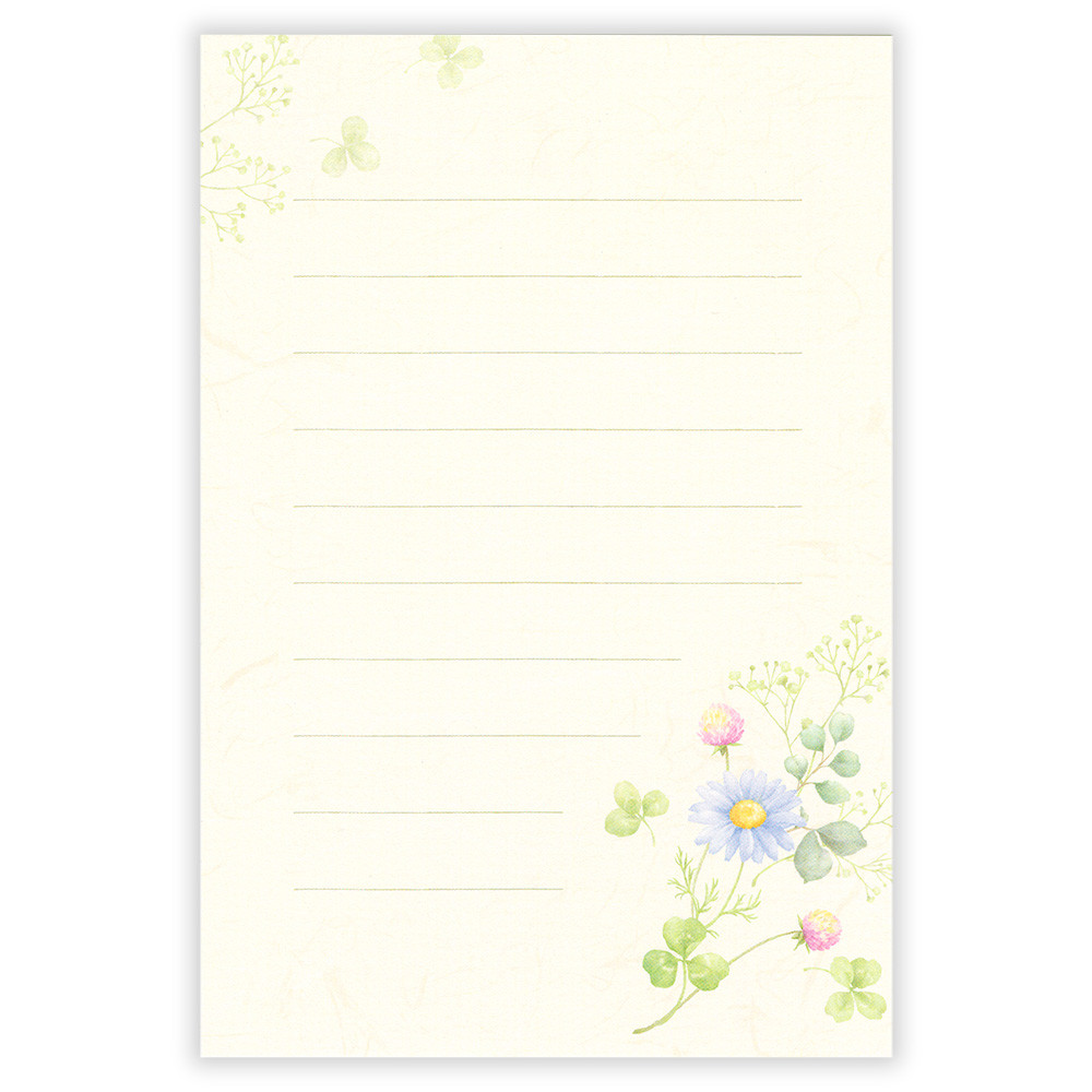 落ち着きのある楚々とした花のデザインで、ご挨拶やお礼、お見舞い、目上の方へのお手紙など幅広くお使いいただけます。