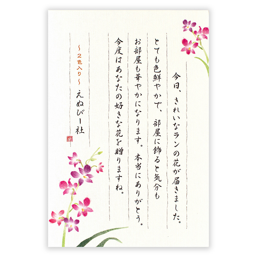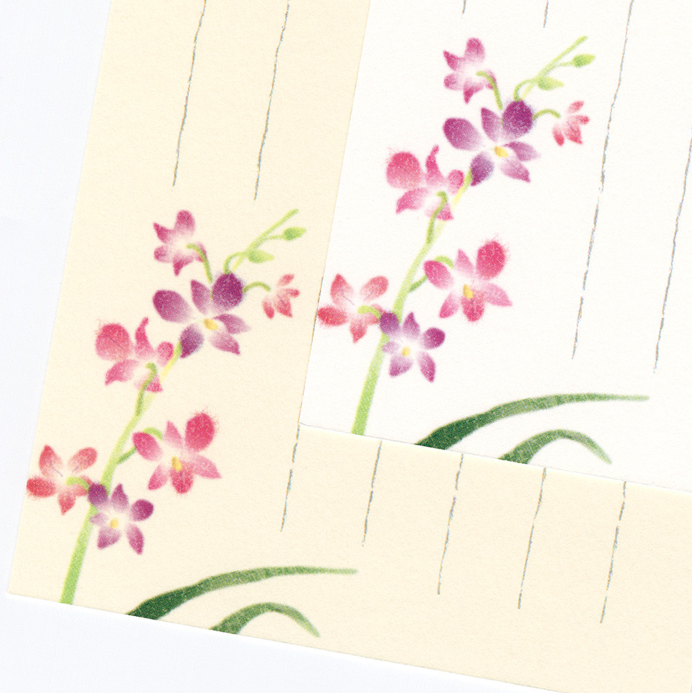 艶やかなデンファレ(洋ラン)をあしらったはがき箋です。