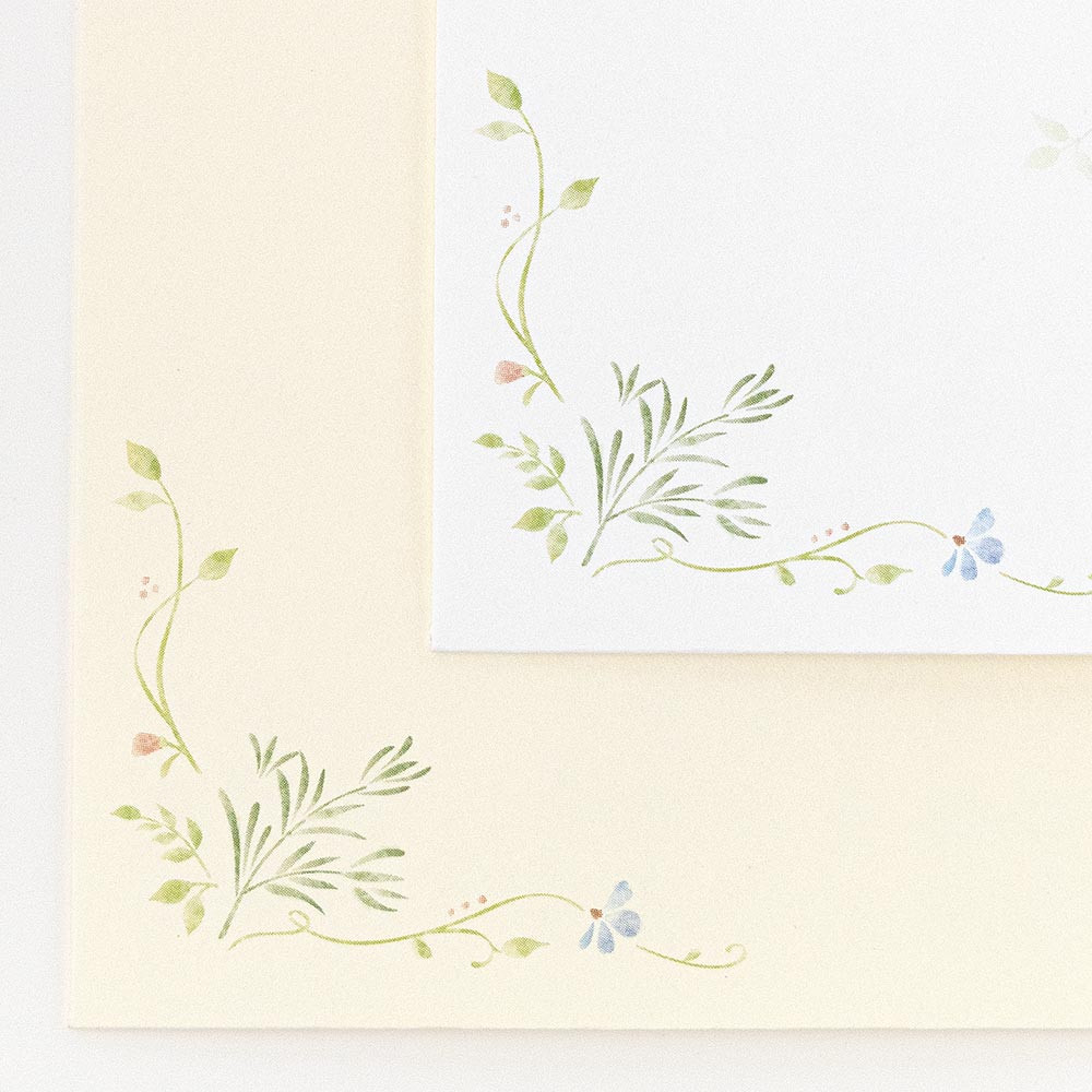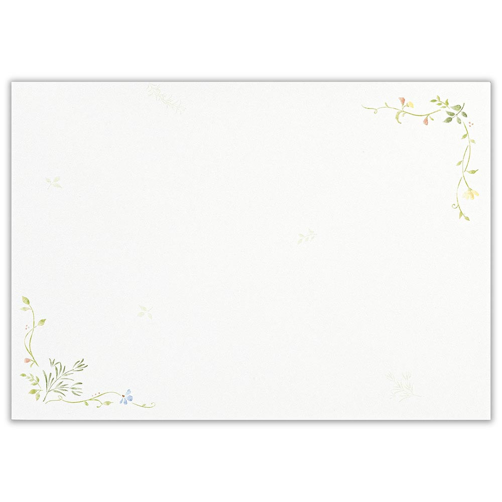 さりげない草花柄入りの2色アソートの封筒です。 ナチュラルな草花を描きました。 白とクリーム色の2色アソートです。