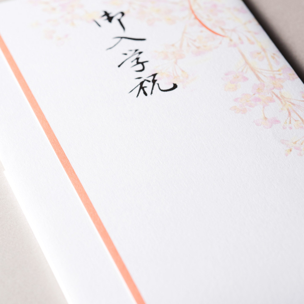 淡い色合いが優しい印象の「御入学祝」祝儀袋です。 優雅に咲き誇る枝垂桜が美しい印象です。 贈る時期は、入学式の前までです。