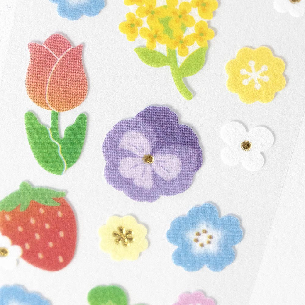 不織布の風合いと手触りが優しい、きらりと金箔が輝くシールです。