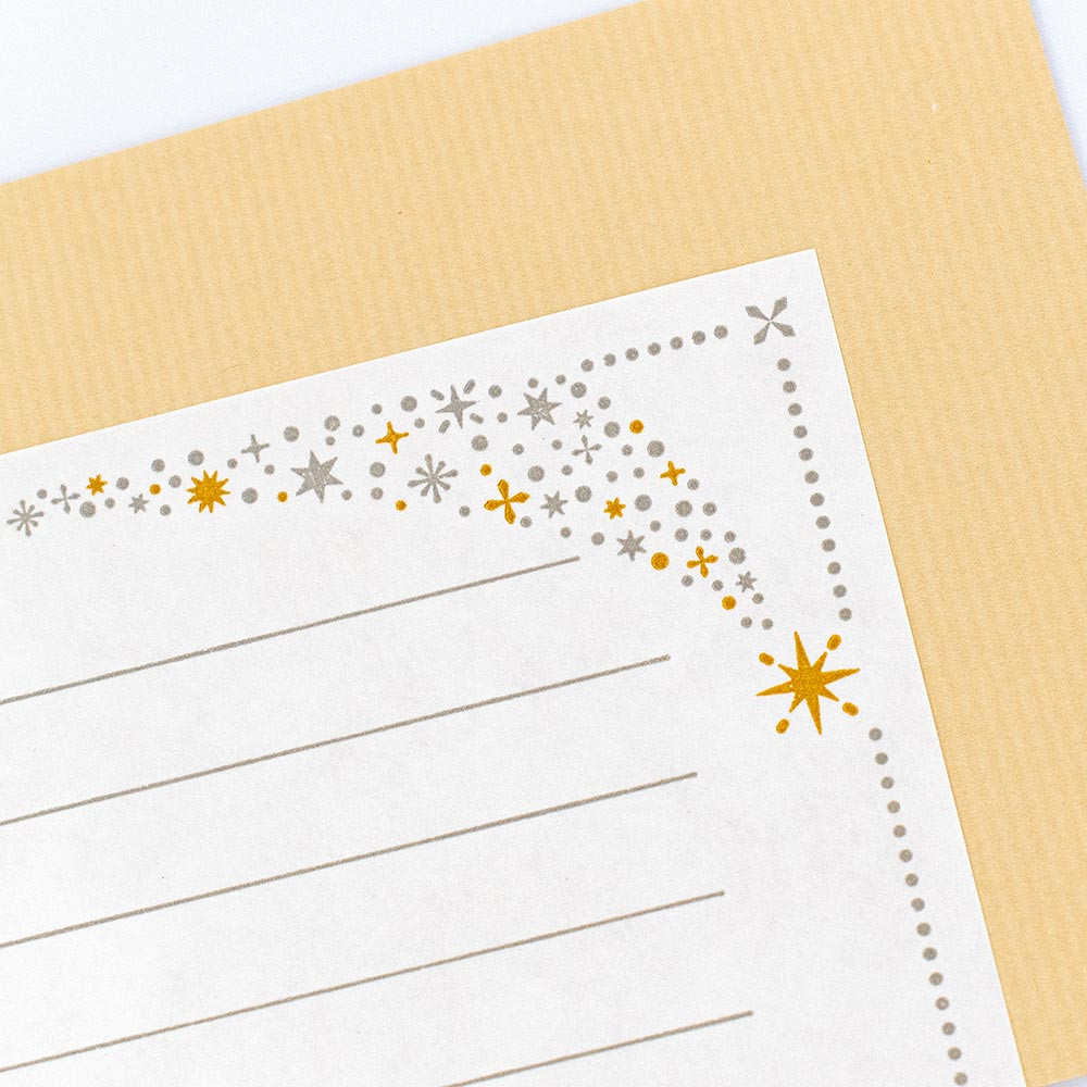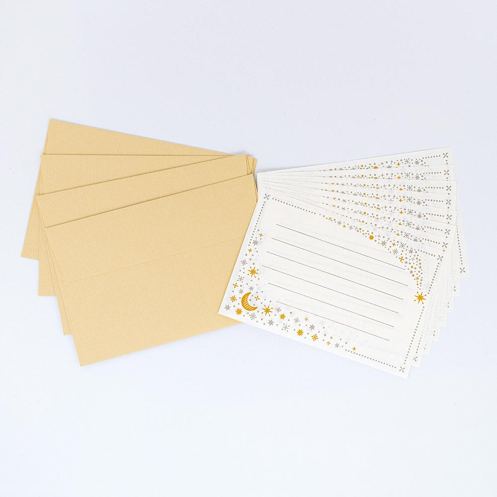 落ち着いた色合いで瞬く星々と流れ星をモチーフにしたレターセットです。