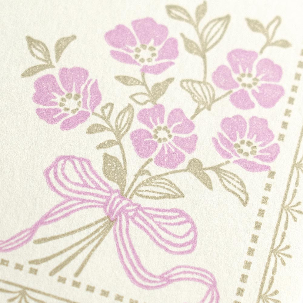活版印刷は、凸状の版を使い圧をかけて紙にインクを転写する昔ながらの印刷技法です。活版印刷ならではのインクの滲み(にじみ)やかすれ具合など、一枚一枚異なる風合いをお楽しみください。