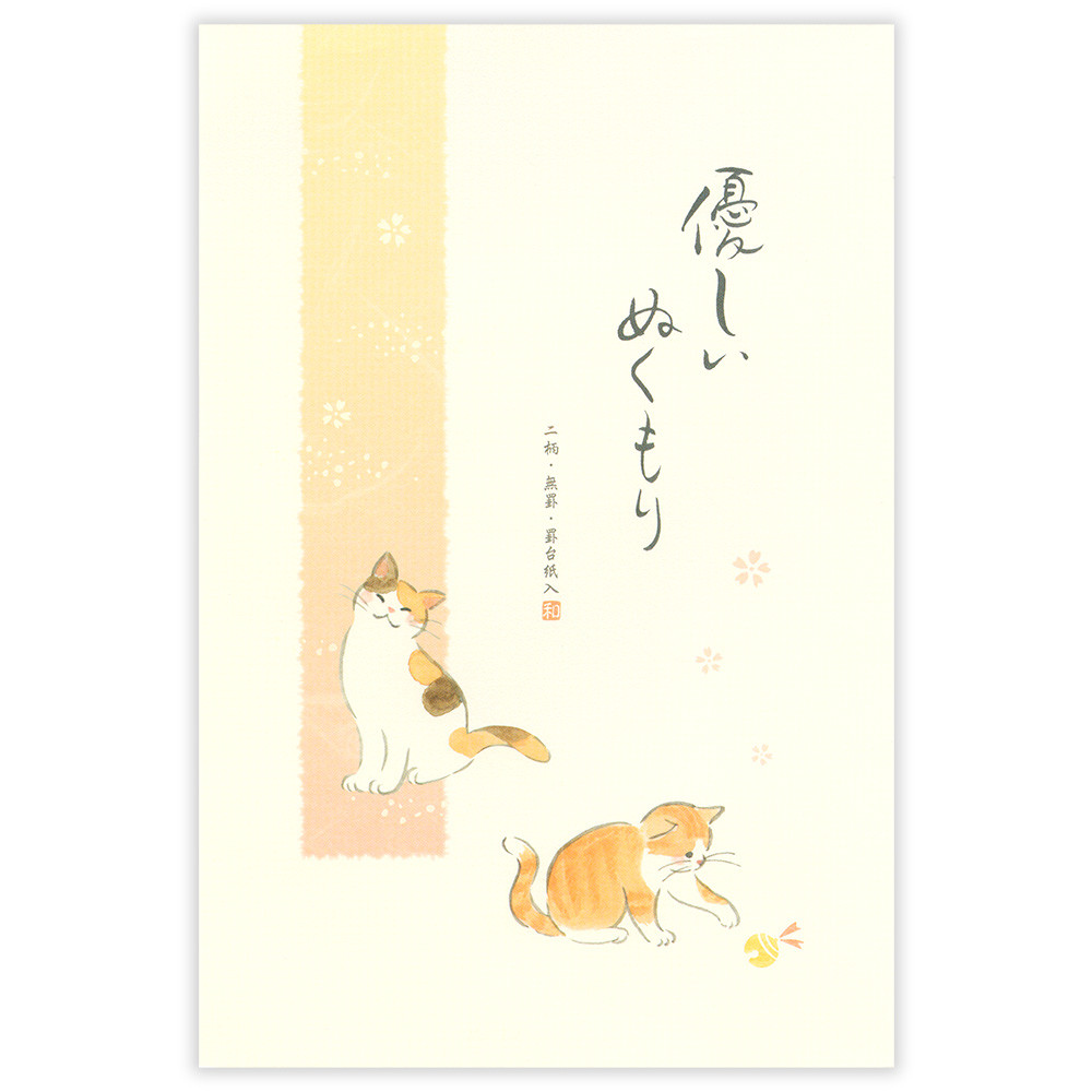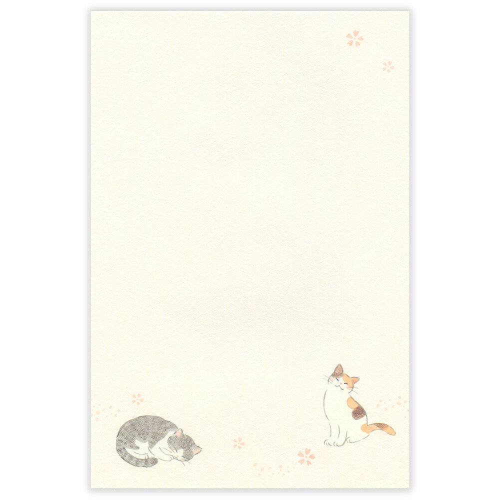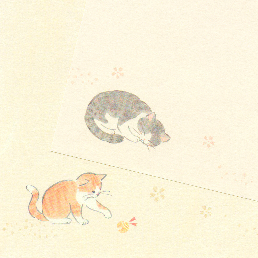 猫たちの和やかな表情を優しいタッチで描いた、2柄アソートの和紙便箋です。 猫がお好きな方へのお手紙にもおすすめです。