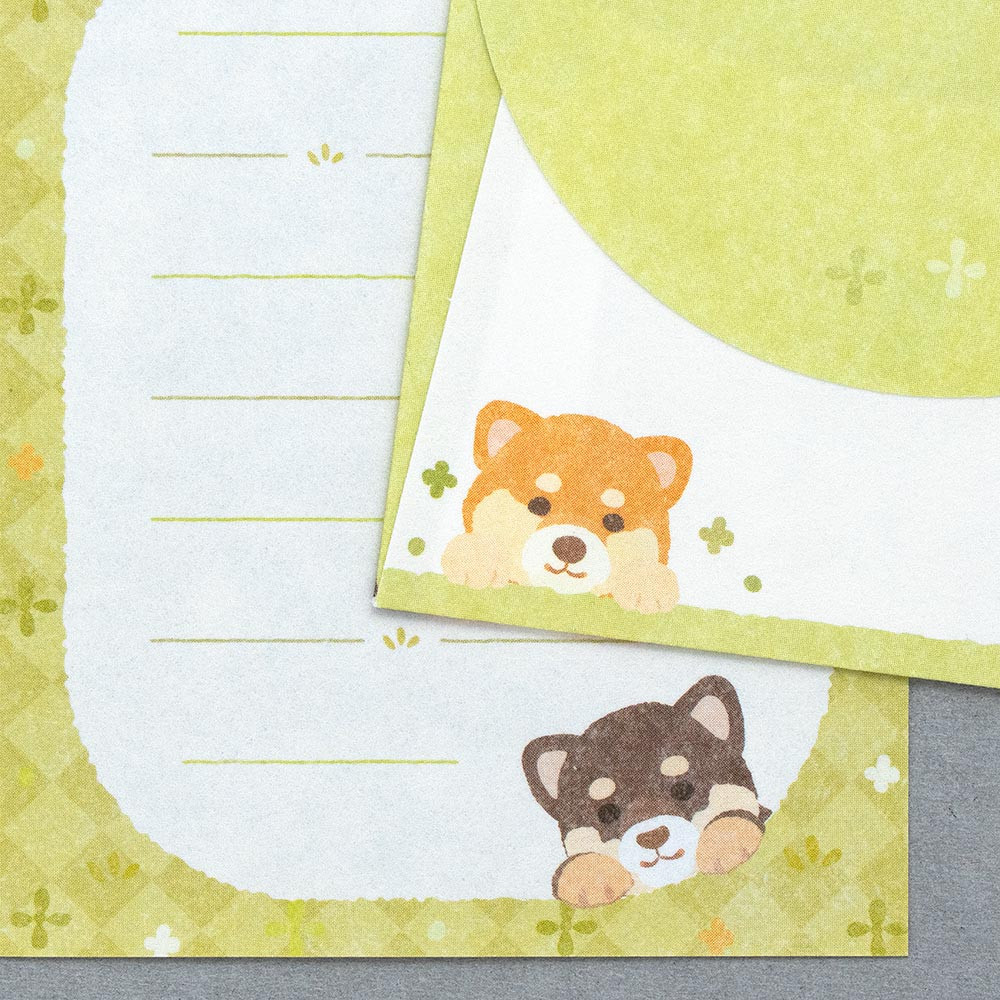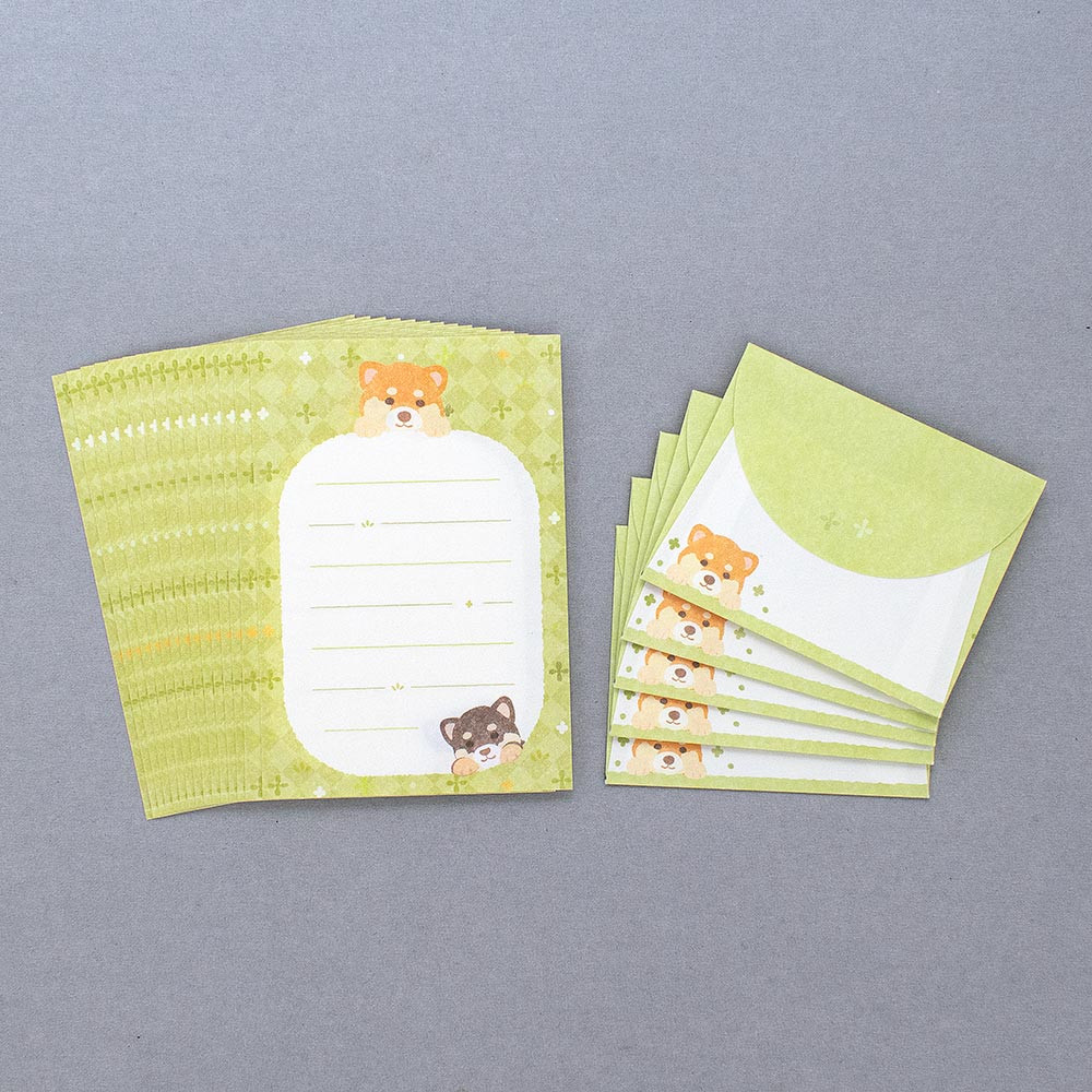 柴犬がぴょこっと顔をのぞかせる仕草に癒される、可愛いミニレターセットです。