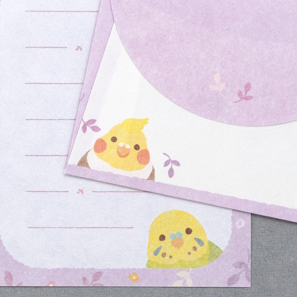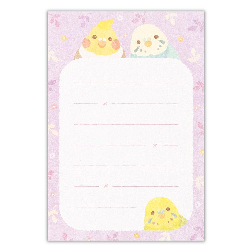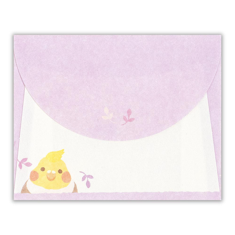 インコがぴょこっと顔をのぞかせる仕草に癒される、可愛いミニレターセットです。