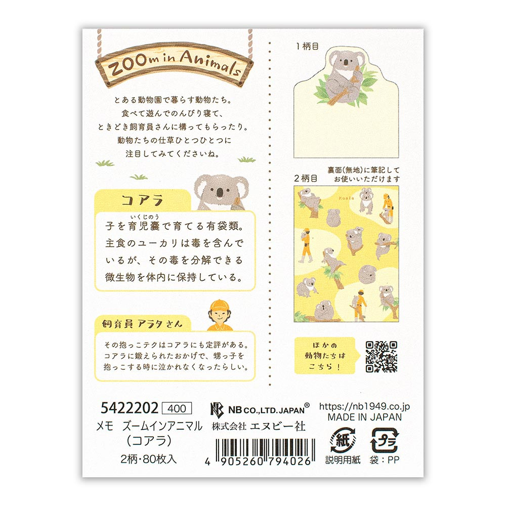 ゆったり過ごすコアラを描いた2柄アソートのメモです。