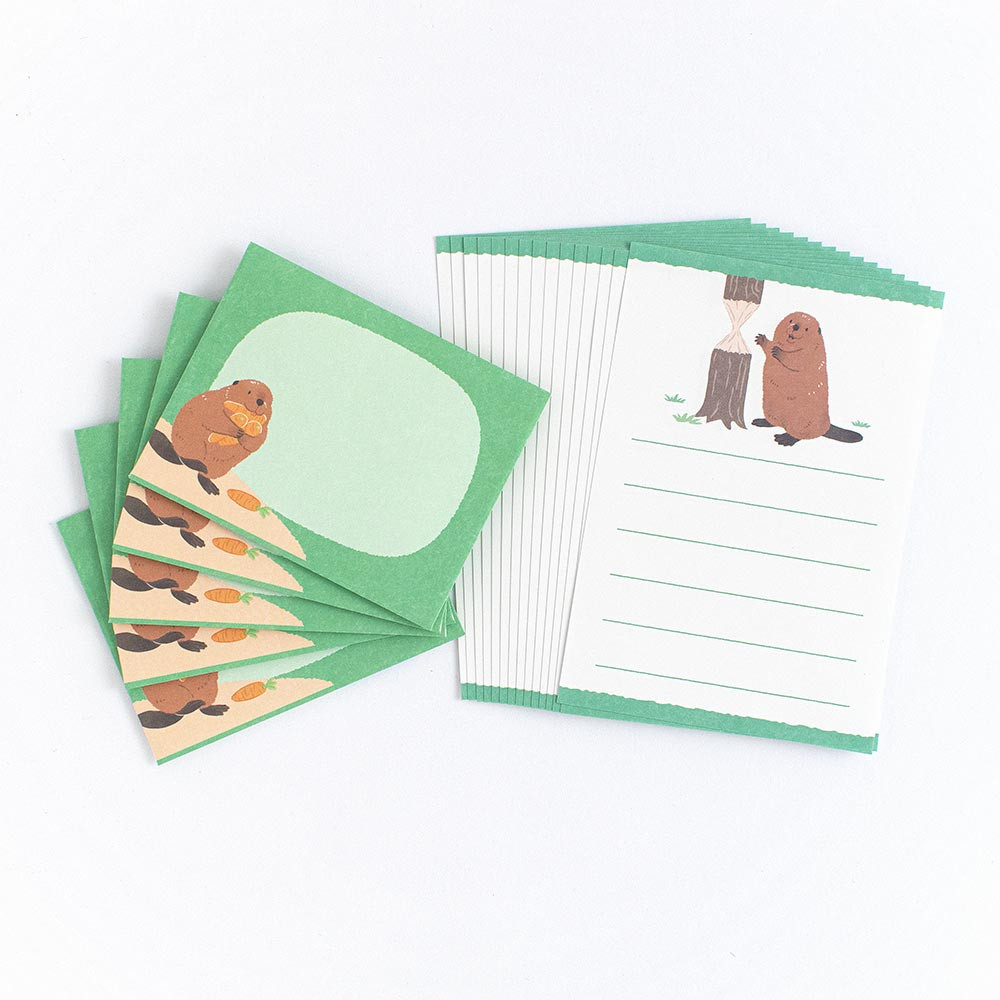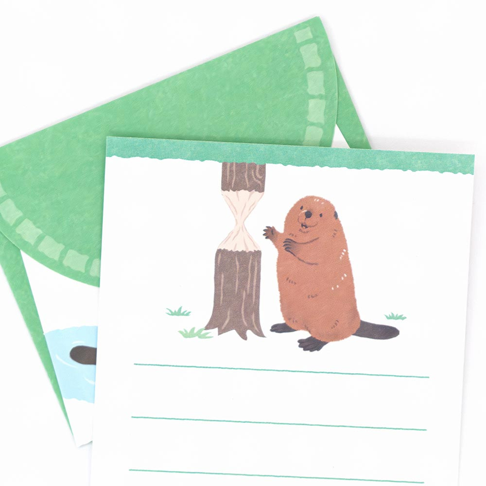 働きもののアメリカビーバーを描いた小たよりです。