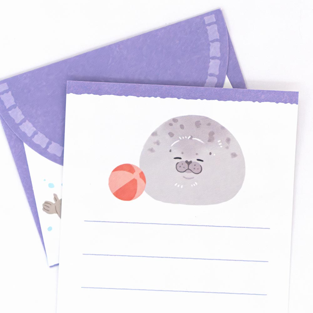 コロコロしながら過ごすアザラシを描いた小たよりです。