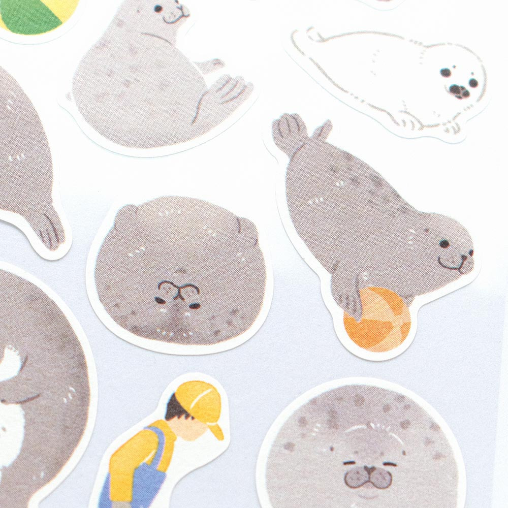 のんびり過ごすアザラシを描いたシールです。