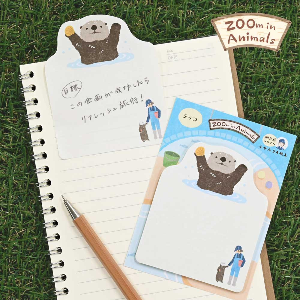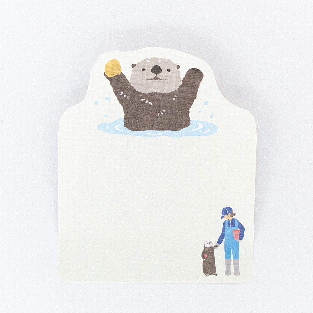 貝をもらって嬉しそうなラッコを描いたふせんです。