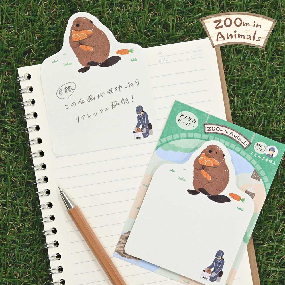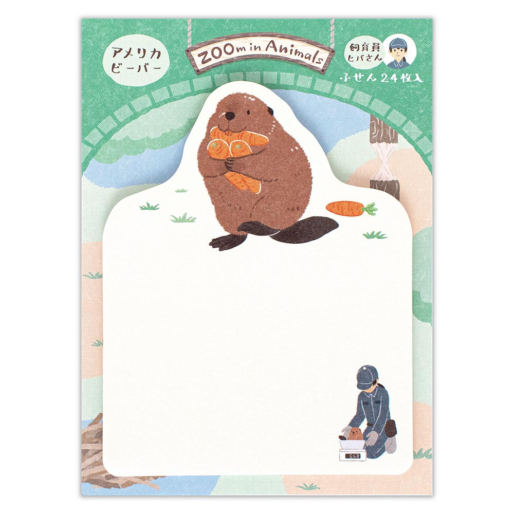 にんじん運搬中のアメリカビーバーを描いたふせんです。