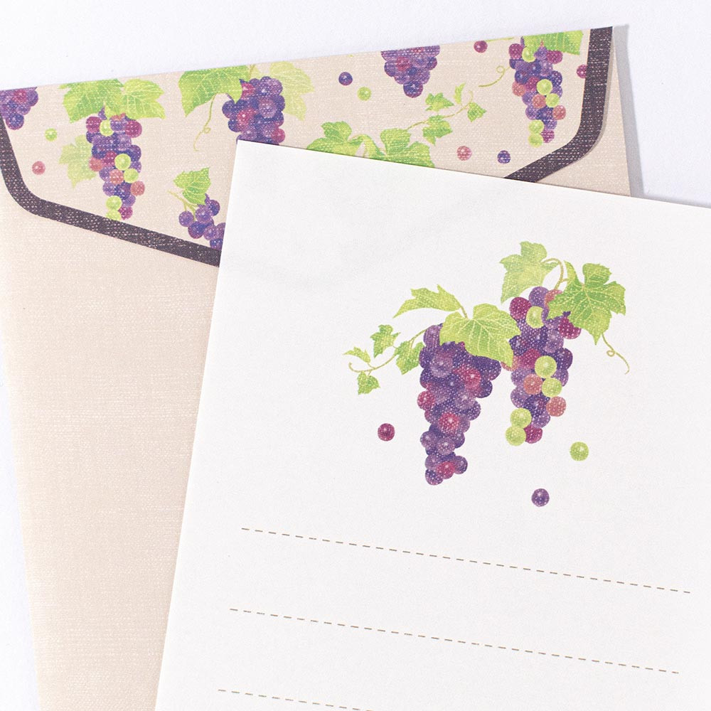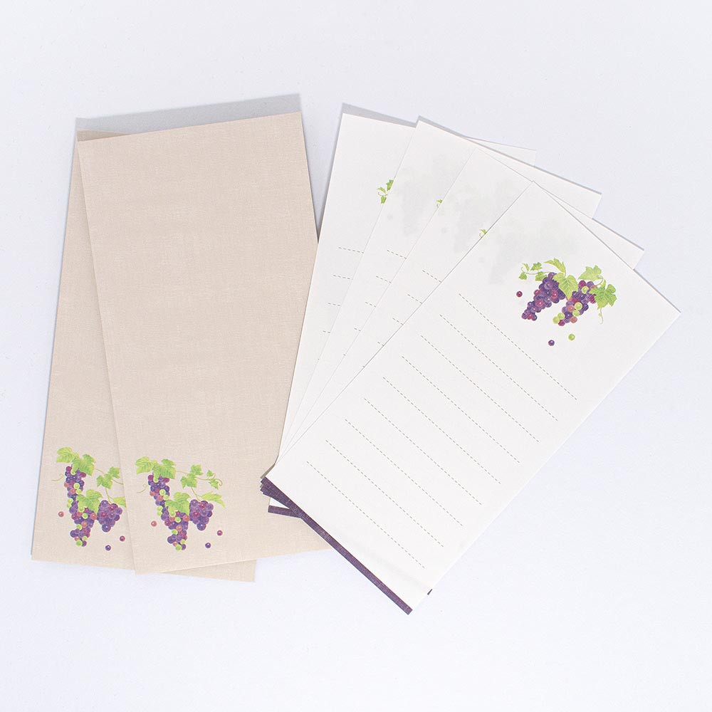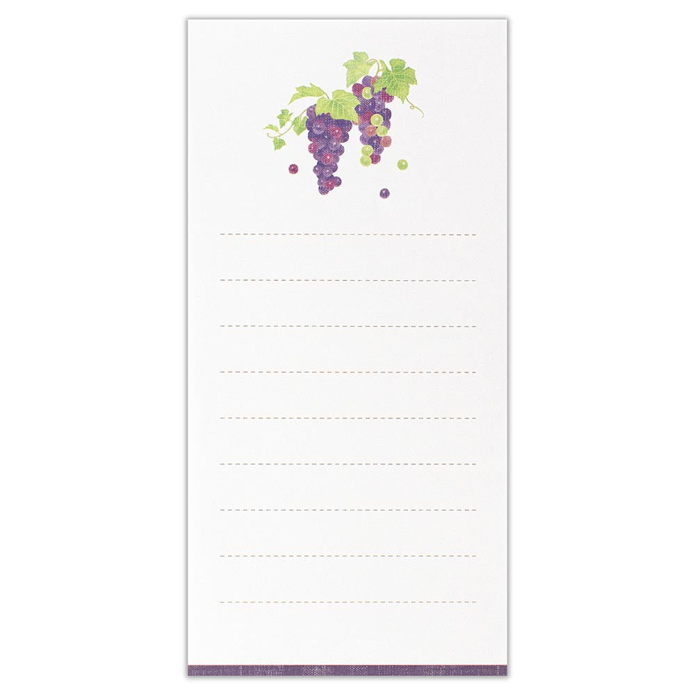 ジューシーなフルーツを描いた、使い切りやすい一筆箋サイズのレターセットです。
