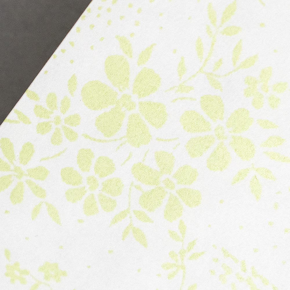 グリーンのパールシルク印刷を施した草花の絵柄で、四季を通してお使いいただけます。
