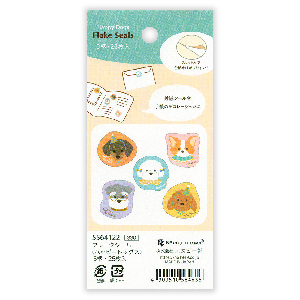 可愛くおめかしをしたワンちゃんたちのフレークシールです。