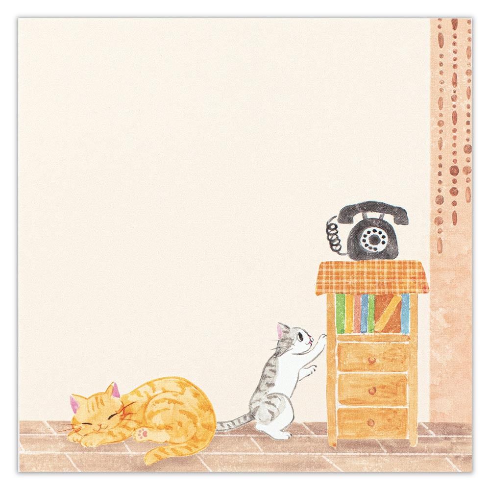 レトロ家電や家具がいっぱいの家に住む、おばあちゃんの飼い猫チビとミーコを描いたメモです。