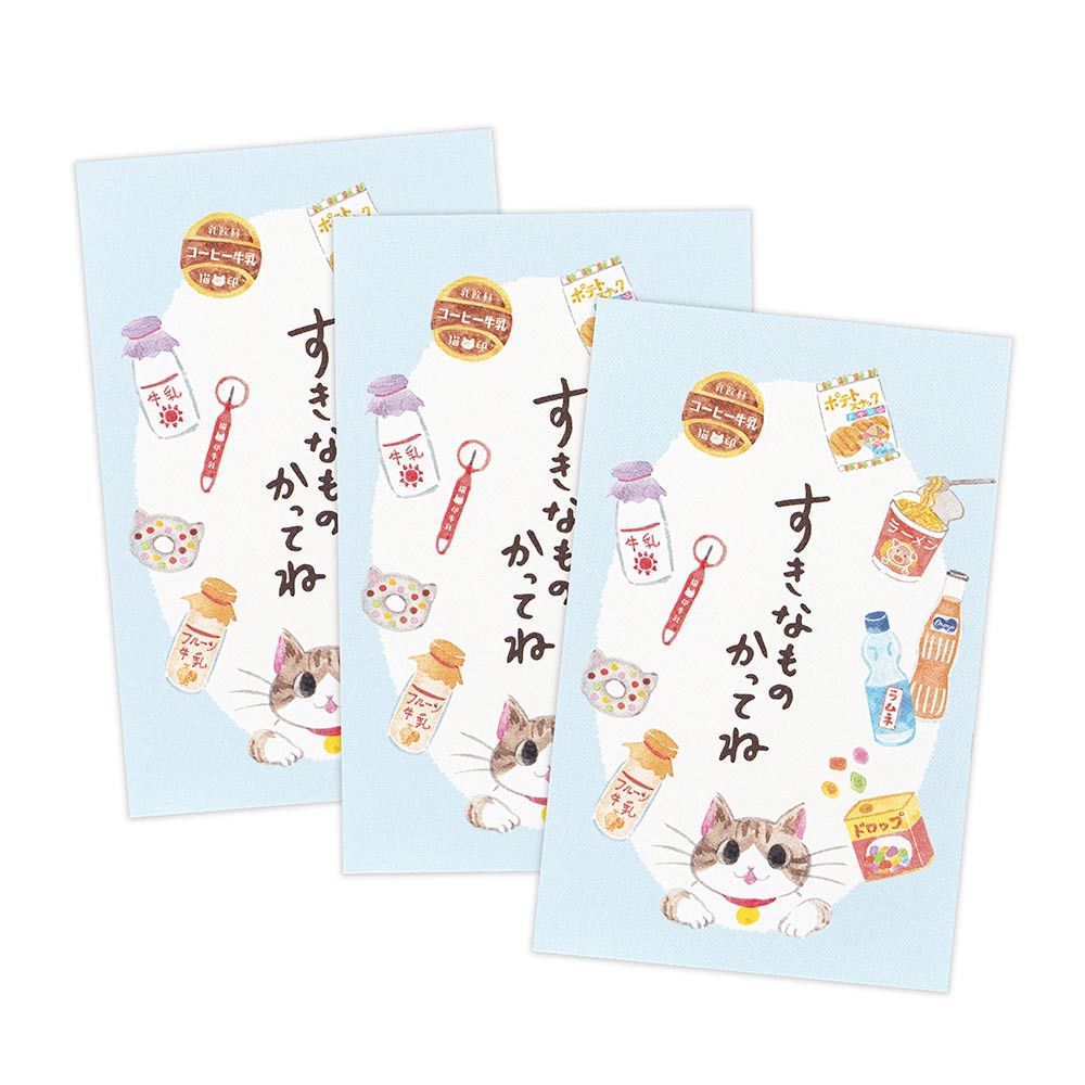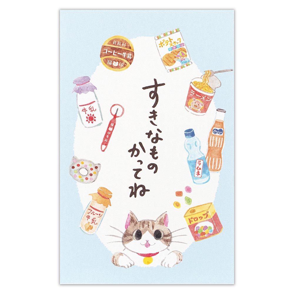 昔懐かしい瓶牛乳やお菓子を描いたぽち袋です。