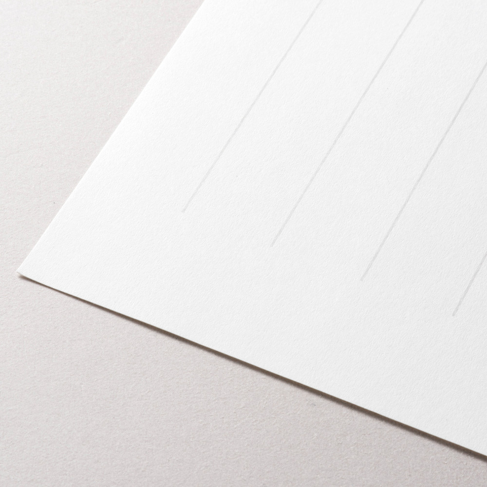 思わず手紙が書きたくなるような表紙が印象的な、B5サイズ相当のタテ8行罫の柄なし便箋です。