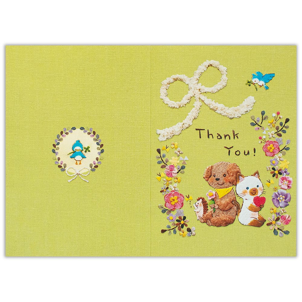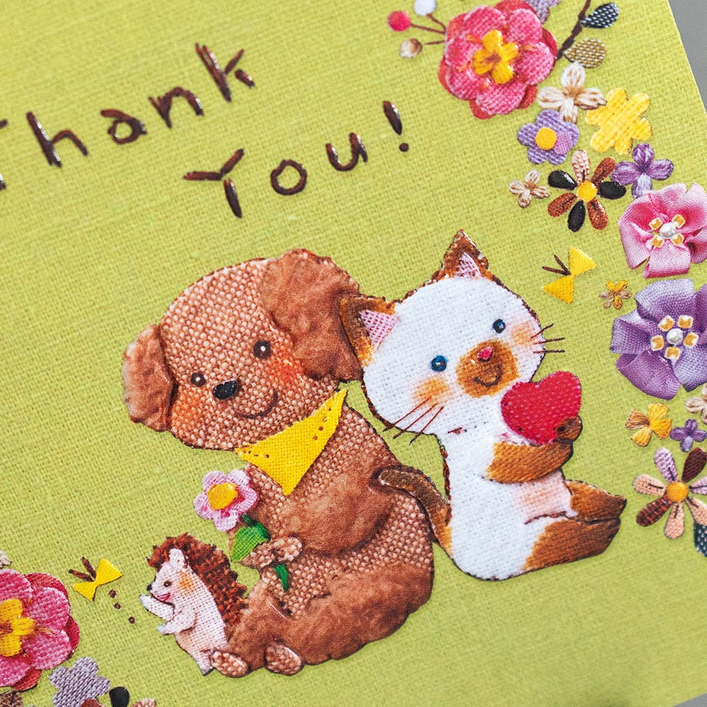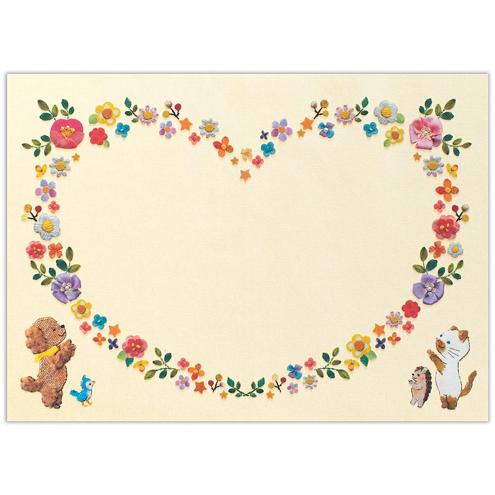 動物たちが花に囲まれてよりそう姿がかわいい、年代問わずお使いいただけるデザインです。