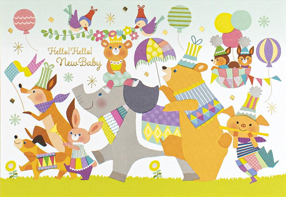 イラストレーター Storm Machine Graphicsさんが描く出産お祝いのカードです。