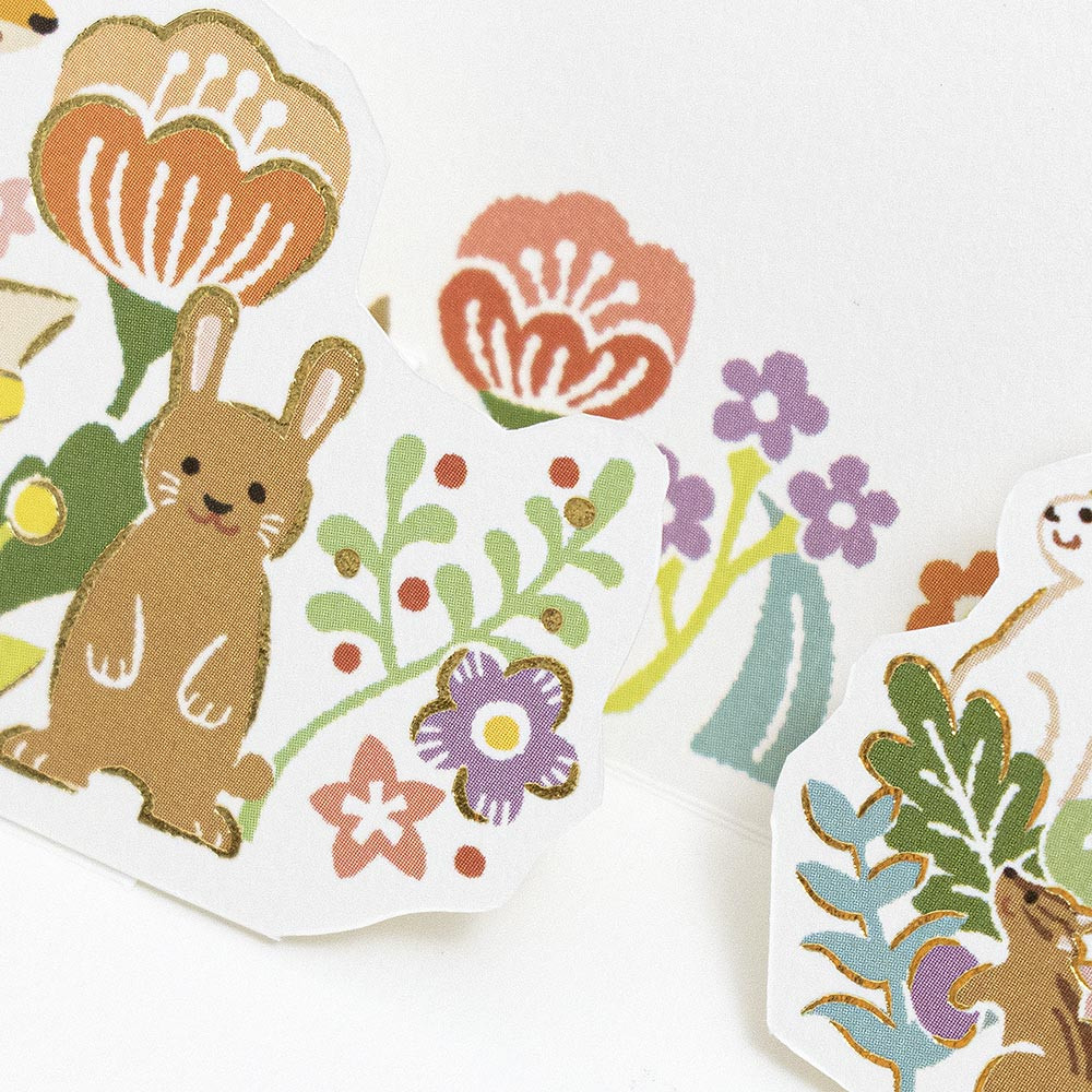 可愛らしい動物たちが華やかに描かれた心がほっこりするようなデザインです。