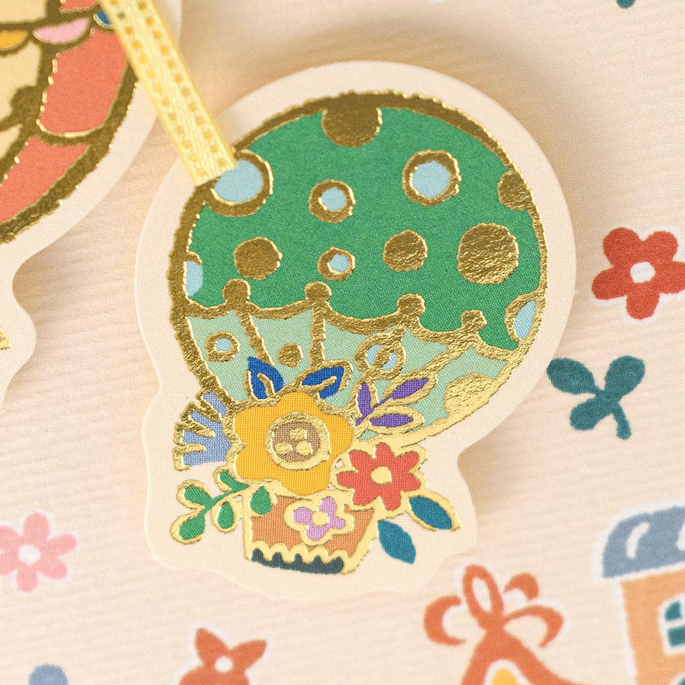 浮かせ貼りのパーツで立体的に仕上げたカードは、金箔押し加工がアクセントです。