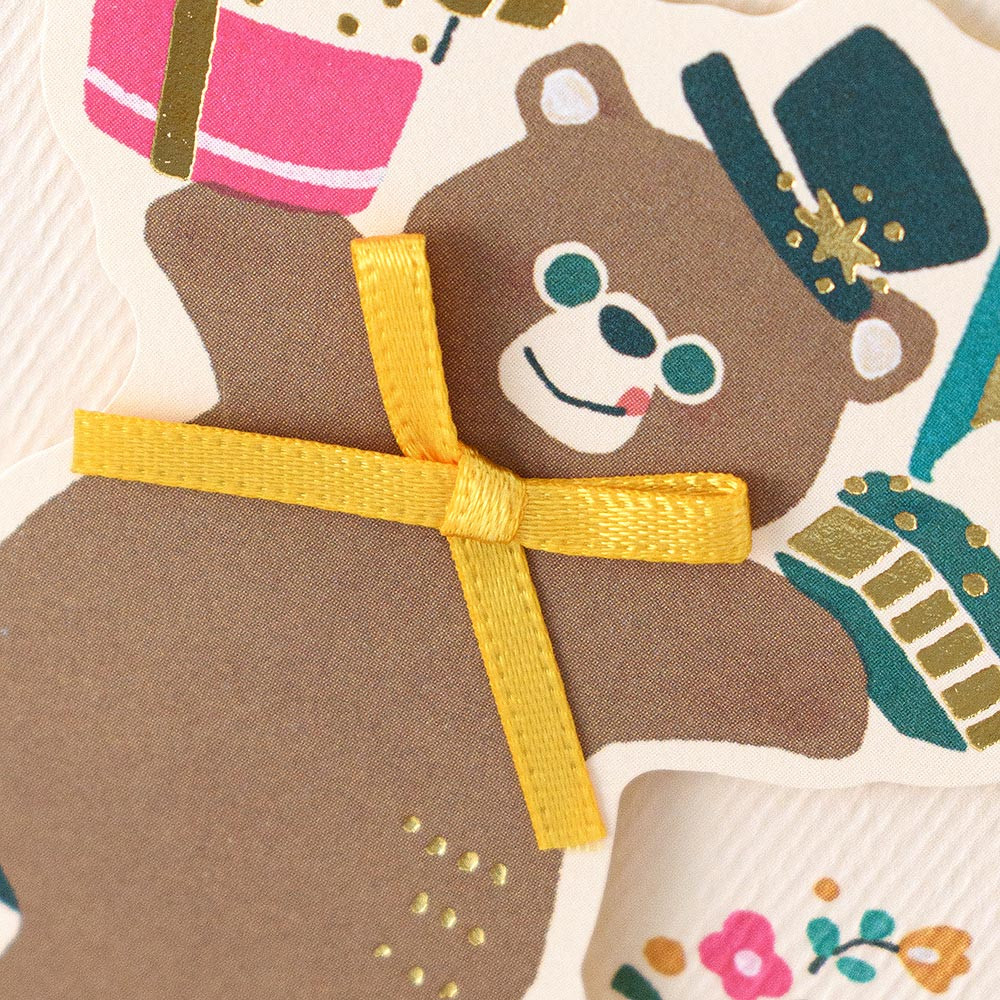 浮かせ貼りのパーツで立体的に仕上げたカードは、金箔押し加工がアクセントです。