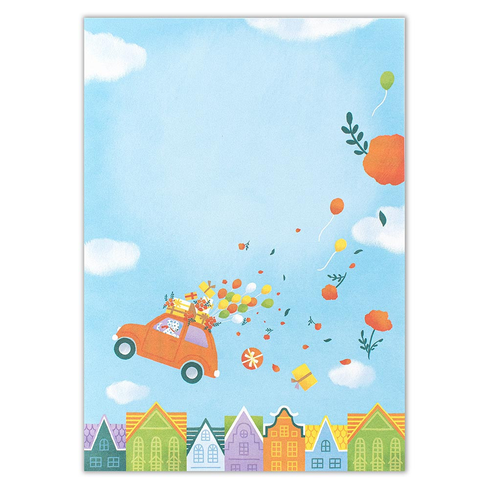 プレゼントをたくさん積んだ車が楽しげなデザインです。