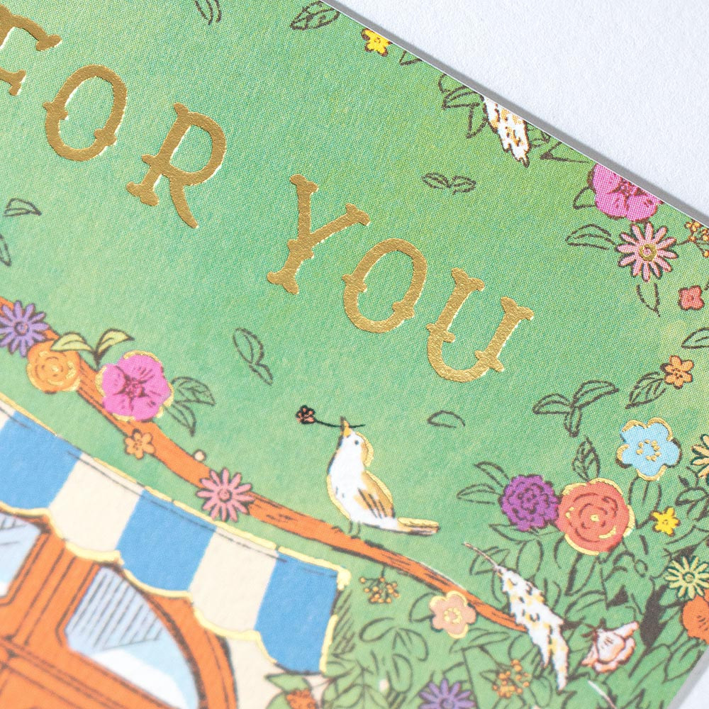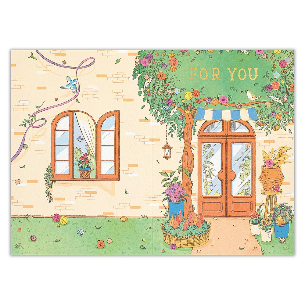 ナチュラルなお花屋さんと小動物が描かれたかわいらしいデザインです。