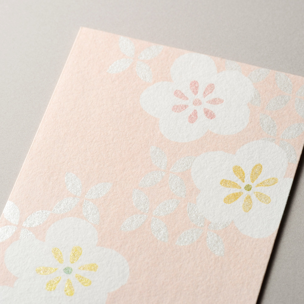 パールシルク印刷を施した大人かわいいのし袋です。 パールシルクの輝きがより一層映えるように大きく花を描きました。