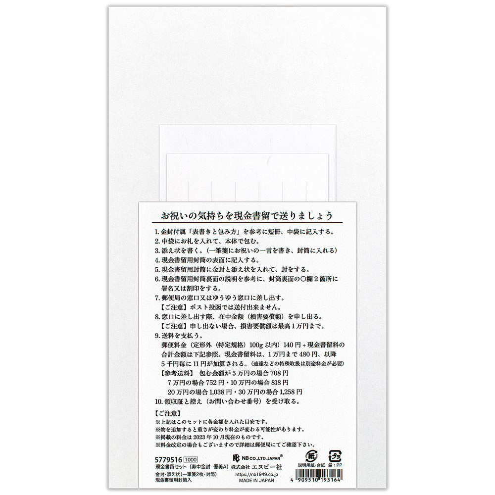 金封、添え状(一筆箋・封筒)、現金書留用封筒がセットになっています。