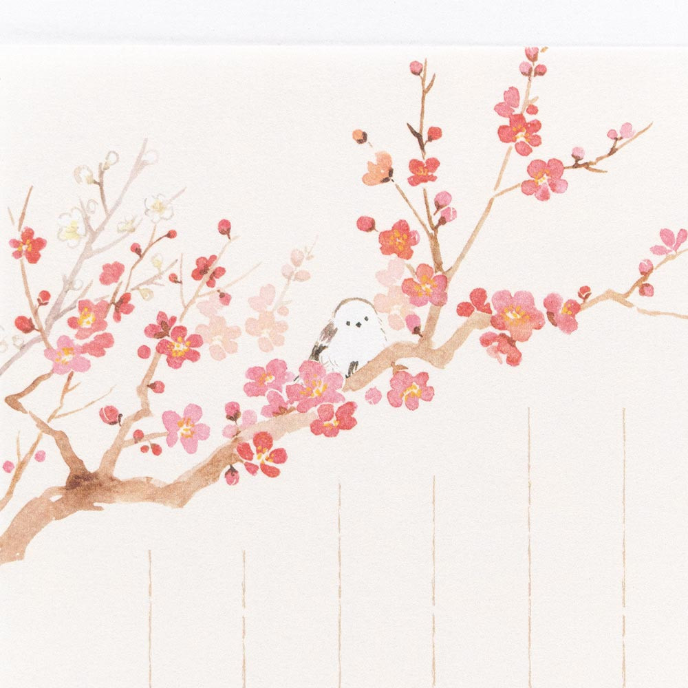 梅の花とシマエナガを水彩で鮮やかに描きました。