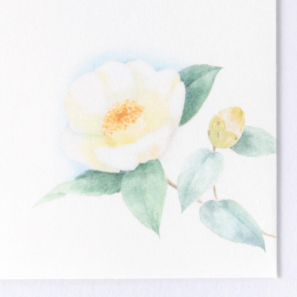 白い椿を水彩で上品に描きました。