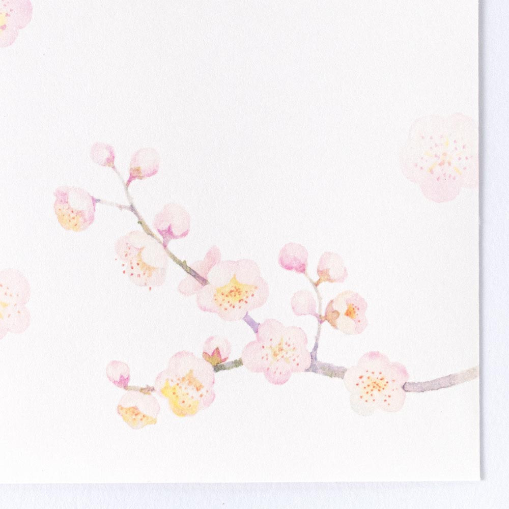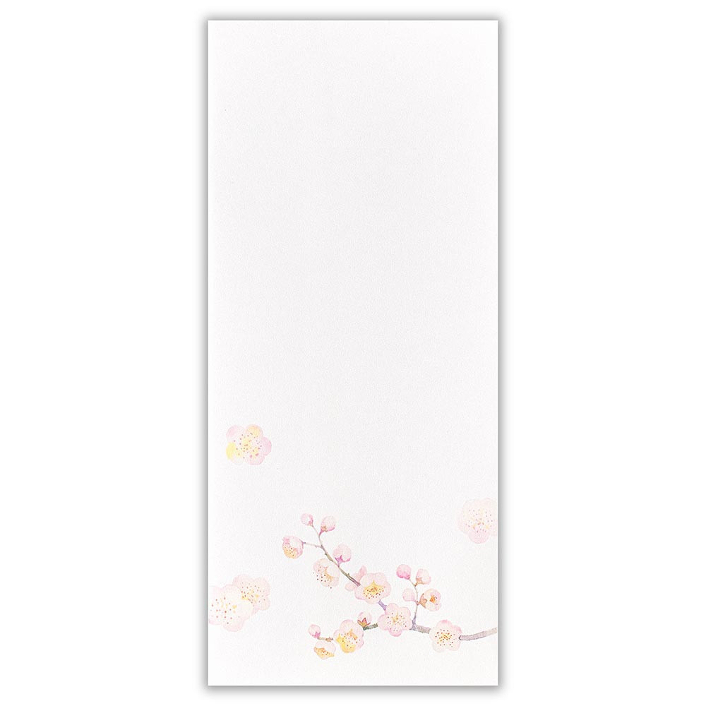 和紙の風合いを感じる冬の季節におすすめの封筒です。 梅の花を水彩で上品に描きました。