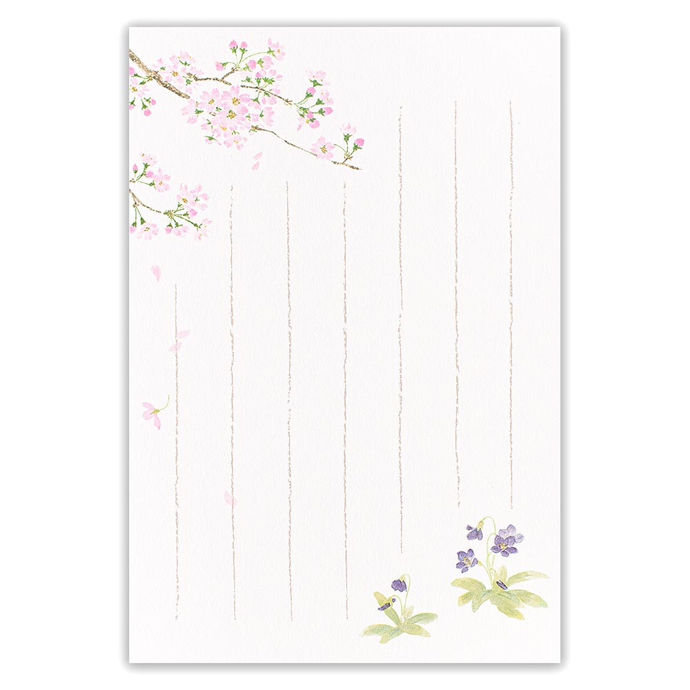 春の季節におすすめのはがきです。 桜とすみれを上品に描きました。 落ち着きのあるデザインは、目上の方へのお手紙にもご使用いただけます。