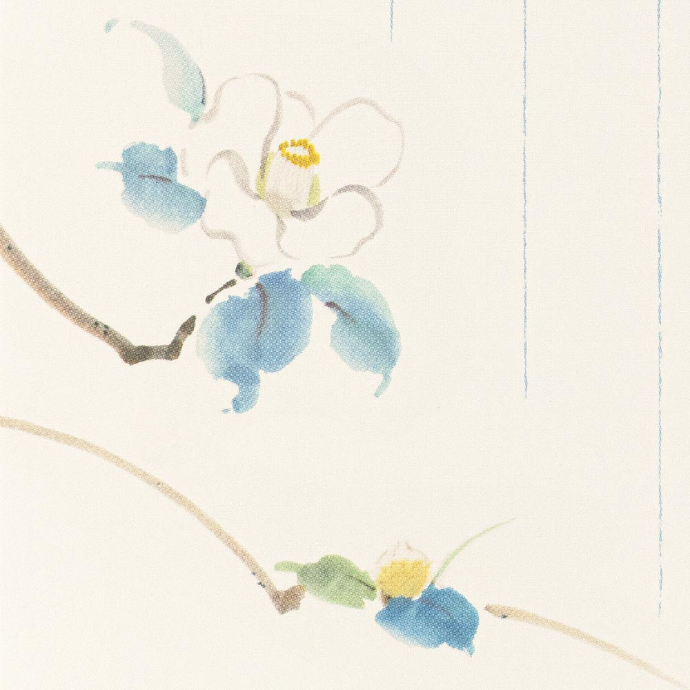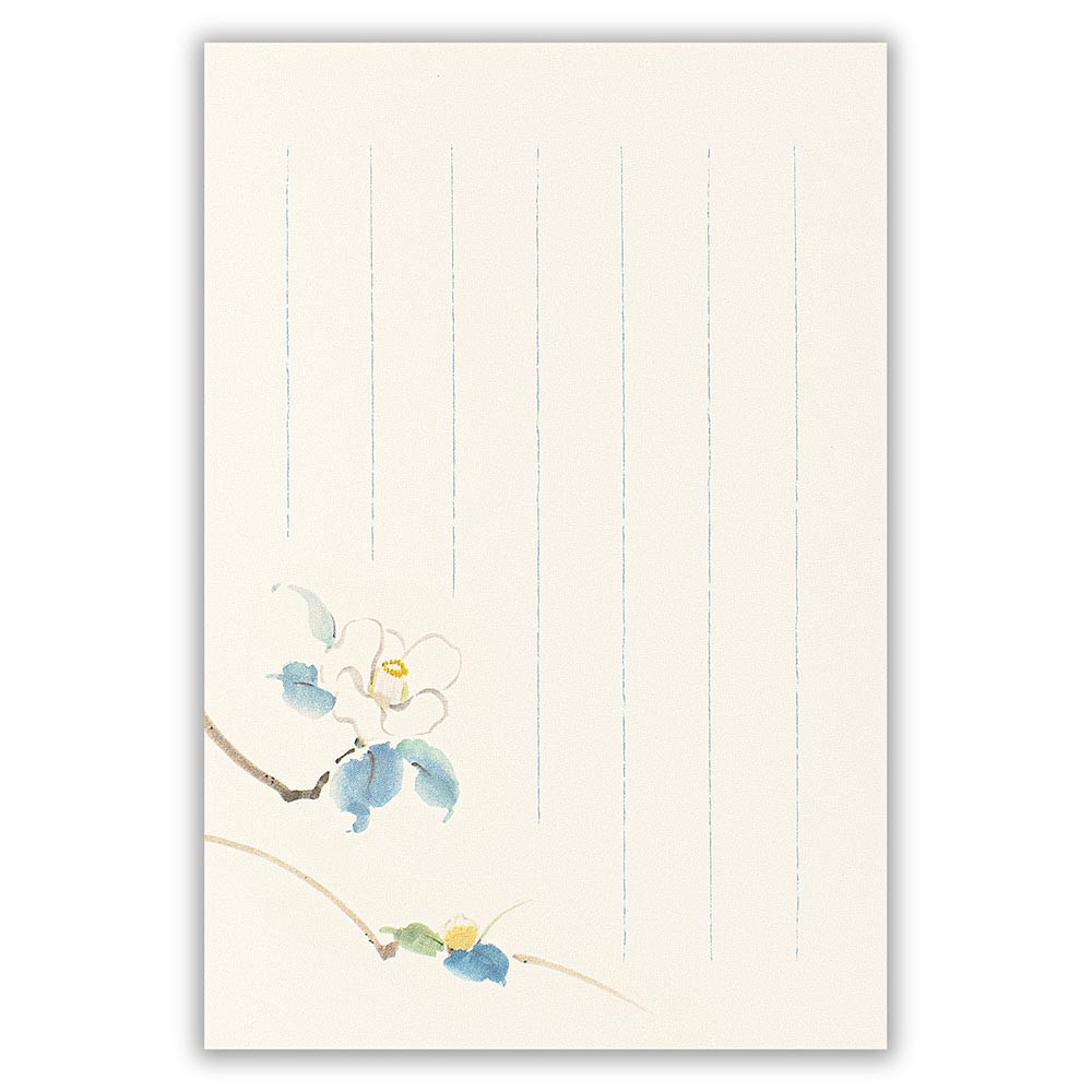 冬の季節におすすめのはがきです。 白椿を上品に描きました。 落ち着きのあるデザインは、目上の方へのお手紙にもご使用いただけます。