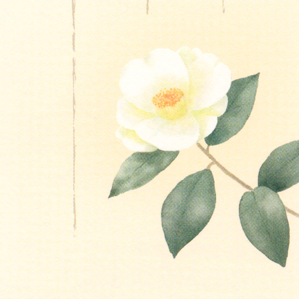 冬の季節におすすめのはがきです。 白い椿を水彩で上品に描きました。