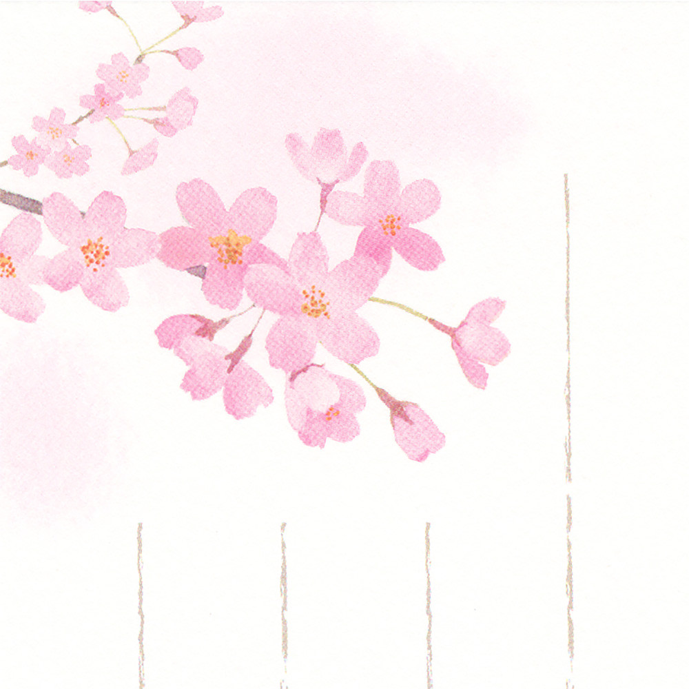 春の季節におすすめのはがきです。 桜を水彩で鮮やかに描きました。 落ち着きあるデザインは、目上の方へのお手紙にもご使用頂けます。