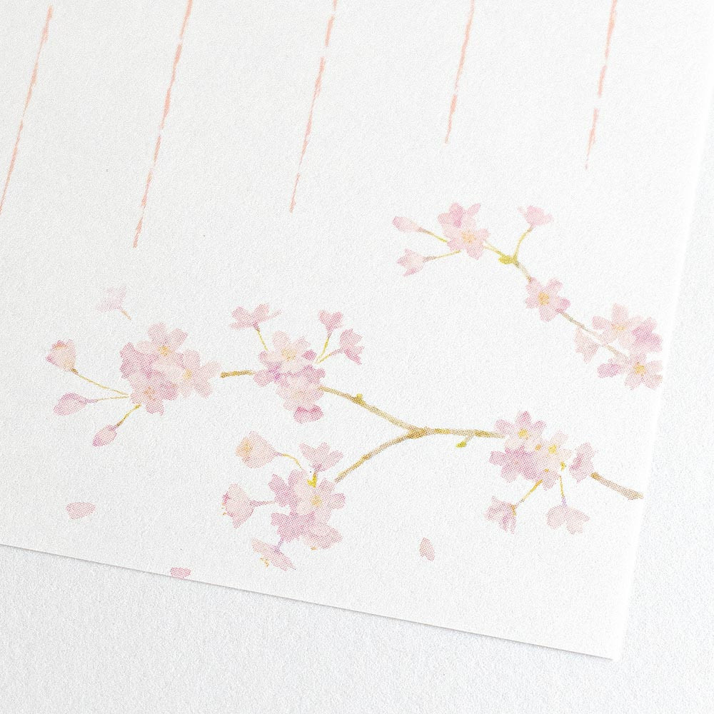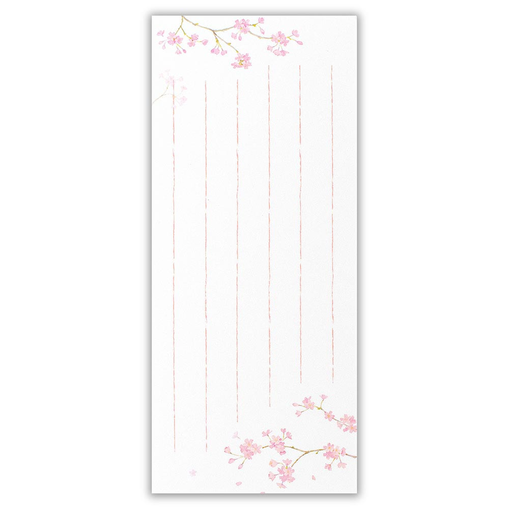 春の季節におすすめの一筆箋です。 桜を水彩で鮮やかに描きました。 和紙の風合いを感じる柔らかい質感と落ち着きあるデザインは、目上の方へのお手紙にもご使用頂けます。