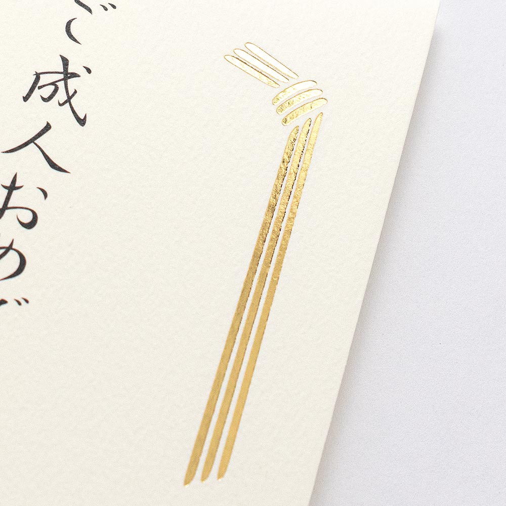 かわいらしいイラストの描かれた成人祝いの御祝儀袋です。 表書きにメッセージが入っているのでより心のこもった成人御祝をお贈りいただけます。 のしには金箔押しを使用し、華やかさをプラスしました。