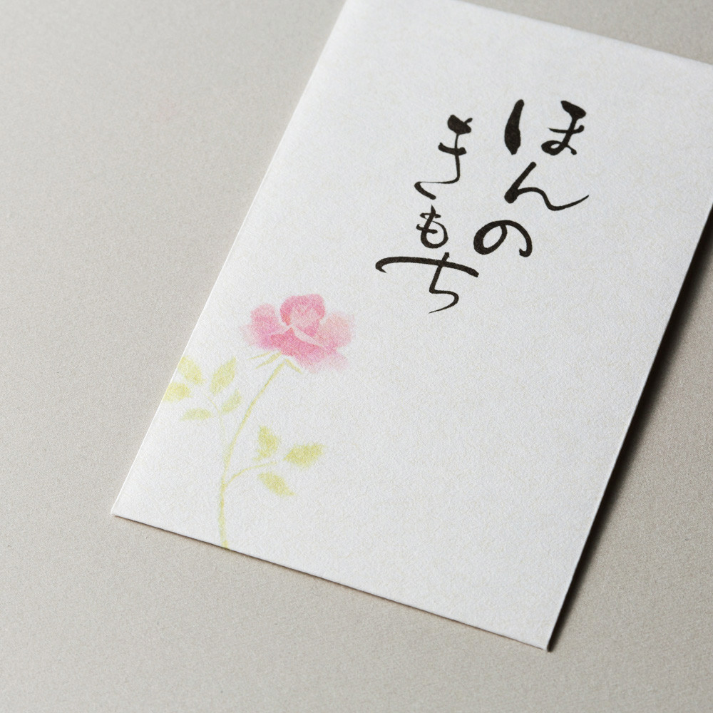 「ほんのきもち」という上品で温かい筆文字の表書きで、気持ちが伝わるぽち袋です。 凜々しいバラのイラスト入りです。 【花】