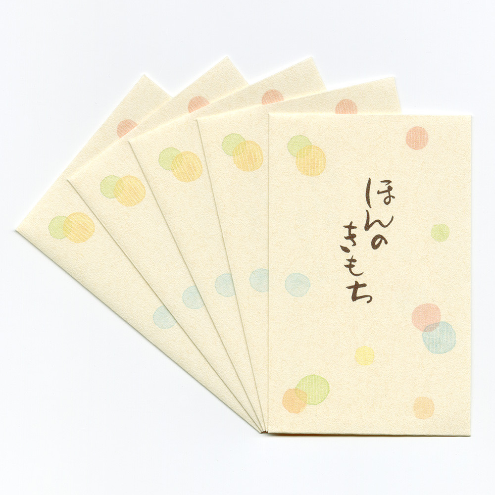 「ほんのきもち」という上品で温かい筆文字の表書きと水彩タッチの水玉模様で、お相手を問わない使いやすいデザインに仕上げました。