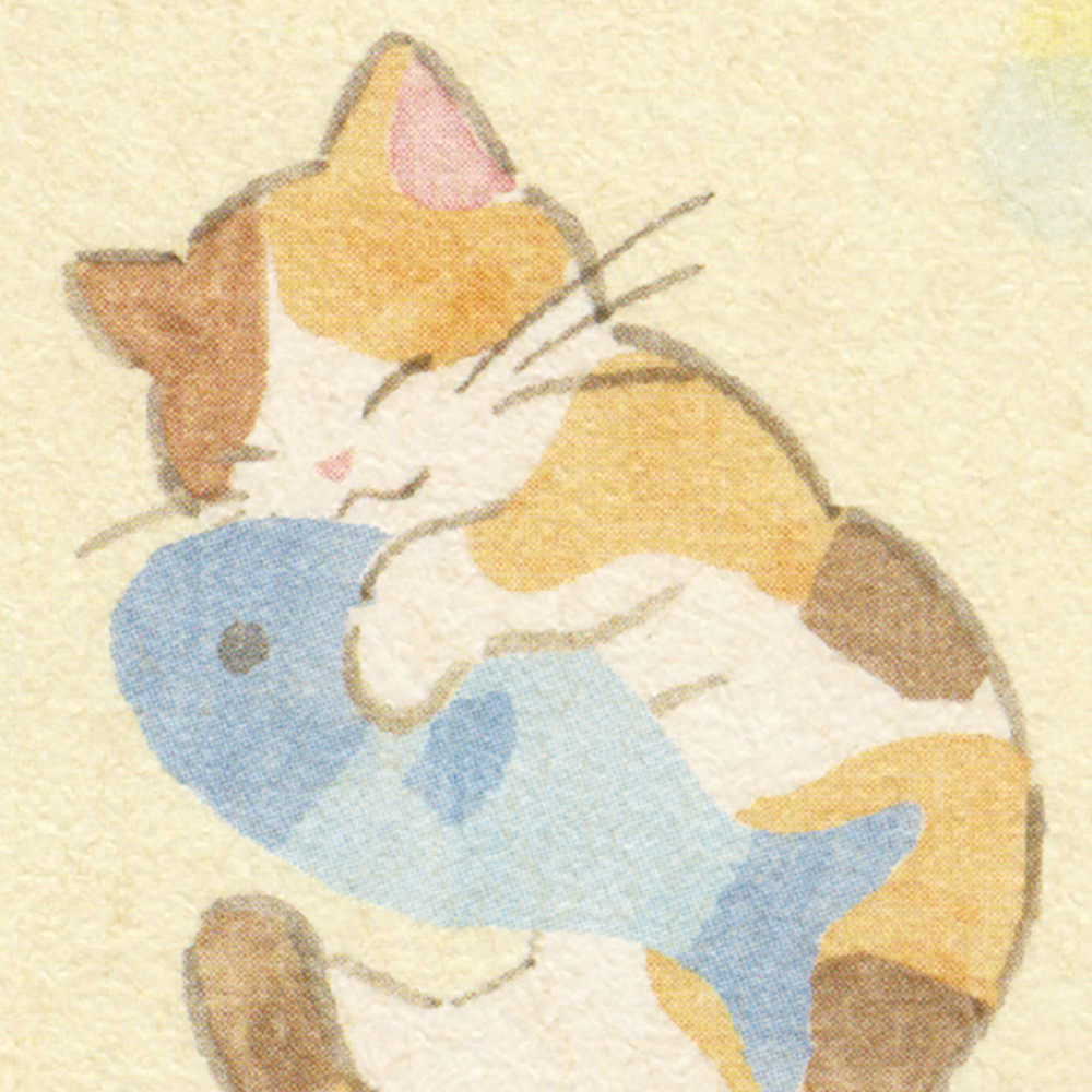 水彩タッチの優しい風合いで三毛猫を可愛らしく描きました。
