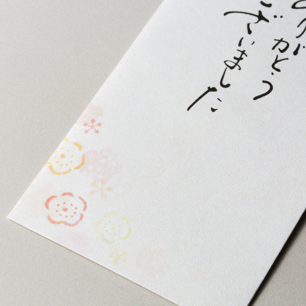 「ありがとうございました」という上品で温かい筆文字の表書きで、感謝の気持ちが伝わるのし袋です。 梅の花のイラスト入りです。
