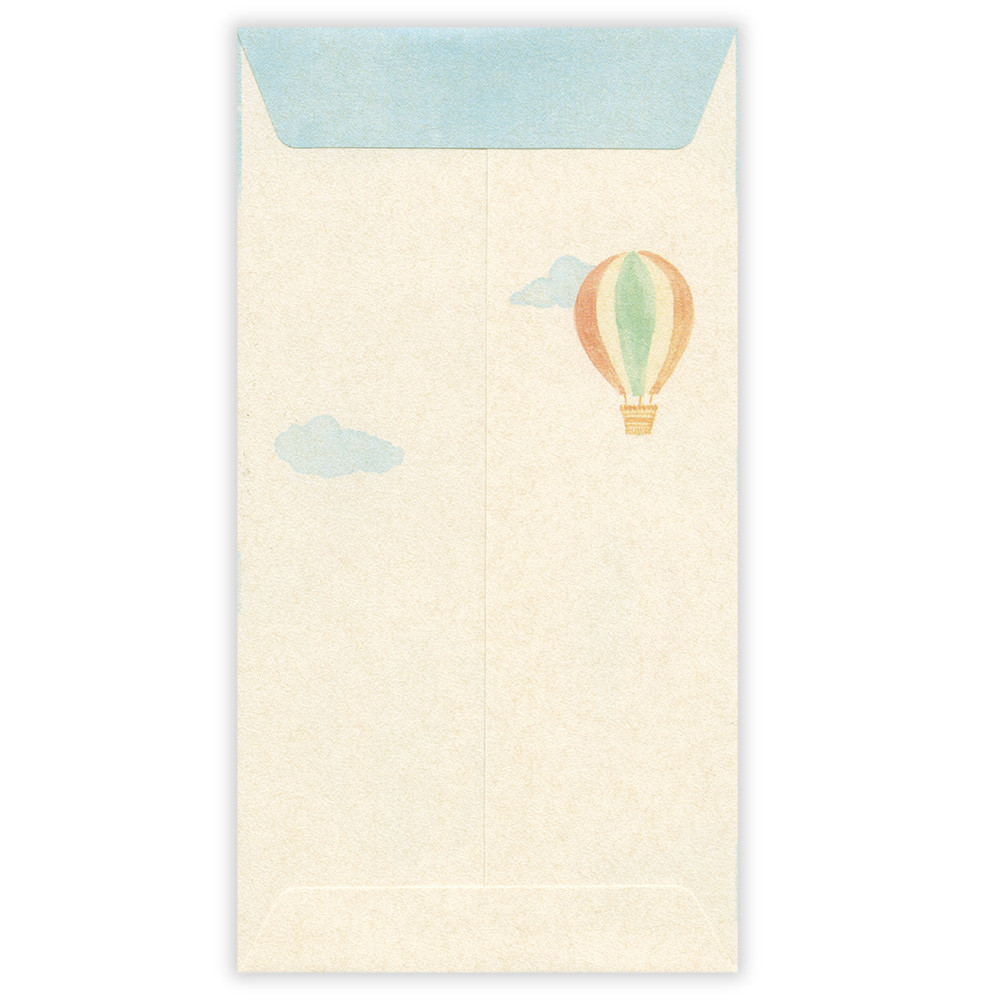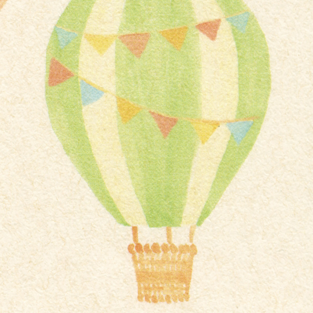 水彩タッチの優しい風合いでの青空と気球を描きました。