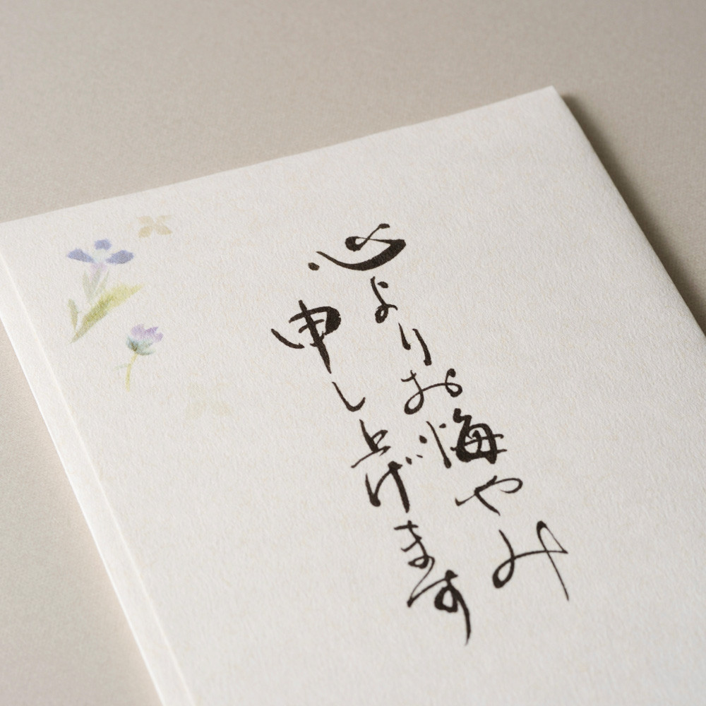 表書きには「心よりお悔やみ申し上げます」の筆文字が印刷された多当です。