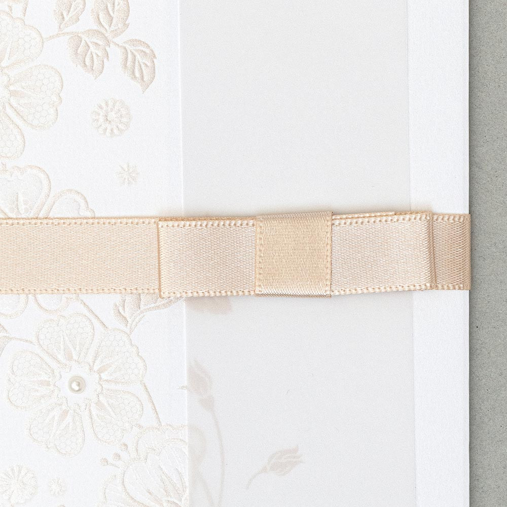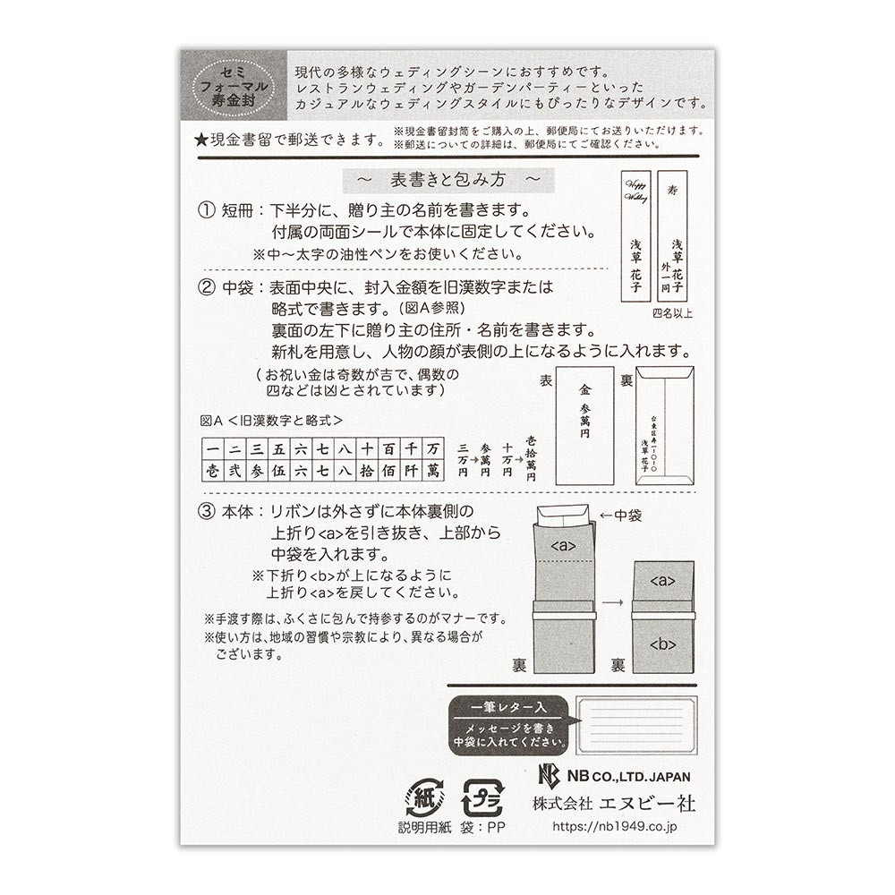 現代の多様なウェディングシーンにオススメの寿金封です。一言メッセージを添えて贈れる一筆レター入り。パールシルクとエンボス加工で表現した繊細なレース模様と柔らかいオフホワイトの色合いで上品な可愛らしさを感じさせるデザインに仕上げました。
